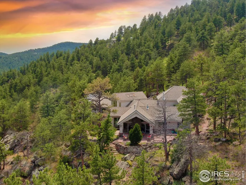Acreage with views, only minutes from downtown Boulder! This stunning custom retreat is nestled on over 35 acres in the tranquil, gated community of Buckingham Hills. This is one of only 9 homes in this exclusive community that share over 300 acres of private open space and trails. Enter into the formal foyer with vaulted ceilings, views, and a striking spiral staircase. Built on 3 levels, this home features 3 bedrooms, 2 fireplaces, office, and a media/theater room with an attached wet bar/kitchenette. The chef's kitchen includes Dacor double ovens, 5 burner gas cooktop, 2 islands, 2 sinks, extensive granite counter space and a sunroom/breakfast alcove with sweeping forest views.These are grand, sunlit spaces! Perfect for entertaining, the outdoor living spaces flow around the home with a hot tub, outdoor gas fire pit, terraced rock gardens, and a pond.