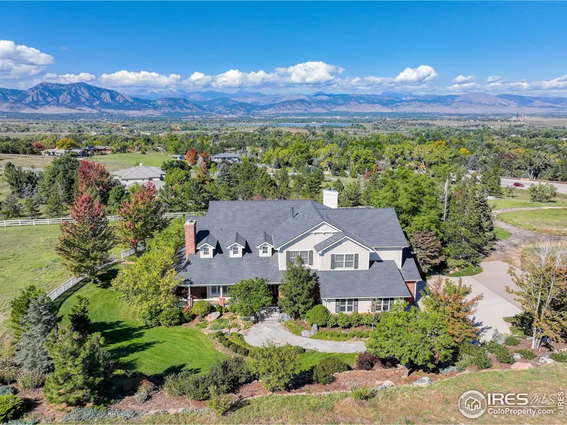 This stunning property features a beautiful spacious home on just under three acres, a separate workshop with a four car garage AND spectacular panoramic views. You will appreciate the quality construction and wood trim inside and out including an amazing mahogany wrap-around porch and multi-level deck. The kitchen is a chef's dream with high end appliances, sub-zero refrigerator, two dishwashers, a prep sink, and an enviable walk-in pantry and the huge island is the ideal gathering space. You'll love entertaining in the great room opening to a library and curling up by the fireplace in the cozy sunroom. The open floor plan creates spaces filled with natural light with walls of windows framing the incredible mountain views. Retreat to the primary suite featuring a fireplace, a sitting area, large luxurious ensuite bath and private balcony, all with views of the mountains! This home features two offices, offering seclusion when working from home. The fully finished lower level is like a second home and would make a great teen or in-law living space. Mature landscaping includes a lovely water feature flowing into a pool near the picturesque gazebo, a perfect setting for intimate gatherings of family and friends. Gorgeous views abound from the walk-out basement which opens to a massive patio with a gas fire pit for those chilly nights. Step through the arbors to a big grassy yard and a lighted sport court for outdoor fun. This is a one-of-a-kind Boulder property that feels like a retreat yet is in a wonderfully convenient location. Close to the Davidson-Mesa Trail and perched on a hillside taking in the city lights and majestic Boulder Flatirons, this is the epitome of Colorado living! Adjacent land parcel to the north at 7981 S. Boulder Rd. (MLS 978452), is being sold in conjunction with this home. It connects this property to S. Boulder. Rd., providing additional parking and a second point of access. Zoning allows for horses.