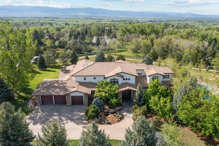 An extraordinary property, a place to indulge yourself and at the same time find refuge from the hectic pace of every day. Over 3.5 acres, this estate is an outdoor enthusiast's dream, w/ priceless snowcapped rocky mountain views anywhere you are on property. Exceptional landscaping w/ a nod to the natural environment & abundant wildlife. Cozy up by the outdoor gas firepit, fill your heart's desire in the greenhouse or organic gardening beds, play on the quality basketball half-court, or relax by the saltwater pool complete w/ wave jet, surround sound speakers, & slide. The main house is a lovely harmony of elegance w/ a grand entryway that greets you w/ vaulted ceilings, custom stone flooring, & elegant light fixtures. There is an enchanting sitting room, along w/ a formal dining room that is sure to impress. Revel in the chef's kitchen featuring custom cabinetry, one-of-a-kind granite countertops, 2 refrigerators, 2 dishwashers, Viking gas range & oven, built-in espresso machine, beverage fridge, & butler's pantry. Entertaining is easy in an open floorplan w/ the large great room & breakfast nook flooded w/ natural light just off the kitchen. The primary retreat offers a quartz stone fireplace, private sitting room, custom shutters, private deck, & bathroom encompassing a steam shower & additional shower, state of the art jetted tub w/ speakers, separate vanities, & huge walk-in closet w/ custom cabinetry & drawers. The separate studio/office/gym building there is another 2800 sq ft of quality space with a professional podcast room used for recordings or live presentations but could be an amazing music/art studio w/ lounge area for work or pleasure.