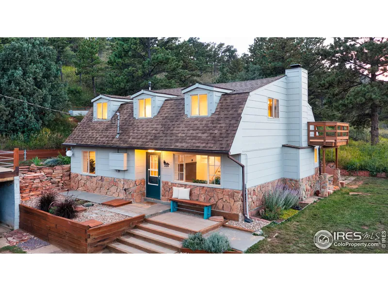 Just beyond the artistic heart of downtown Lyons, a special property awaits. Framed by nature's canvas, this home offers serene views of the surrounding foothills, valley, and profile of iconic Steamboat Mountain. Settled on a generous acre of land, its interior depicts thoughtful remodeling choices that are bright, contemporary, and infused with warmth. This home has a very flexible floor plan with additional bonus rooms for your guests or to create another office, playroom, exercise or yoga space. Cooking enthusiasts will enjoy their time in the expansive kitchen, brimming with counter space, warm wood cabinetry and light-filled windows. Unwind in a living room accentuated by its inviting fireplace, luxury vinyl wood flooring and large picture windows. A main floor bedroom plus additional bonus room complete the main floor living experience. The upstairs offers comfort and a lofty feel with high ceilings in the primary and secondary rooms. Outdoors, you'll enjoy the unique artistry of newer flagstone patio, walkways and terraced garden areas plus an additional private deck and west patio to enjoy a quiet cup of coffee or glass of wine. The original garage had doors removed and is being used as a carport. It offers a unique opportunity for increased outdoor entertaining area due to the rooftop deck but it does need some repairs. An additional 17x16 foot shed/pumphouse provides storage space for your bikes and other outdoor toys and tools. Crave a touch of downtown Lyons charm? Lyons' eclectic shopping, scenic parks, and delicious restaurants are but a few minutes bike ride or short drive away. This property is truly a rare fusion of location, charm, and value. Your next chapter starts here.