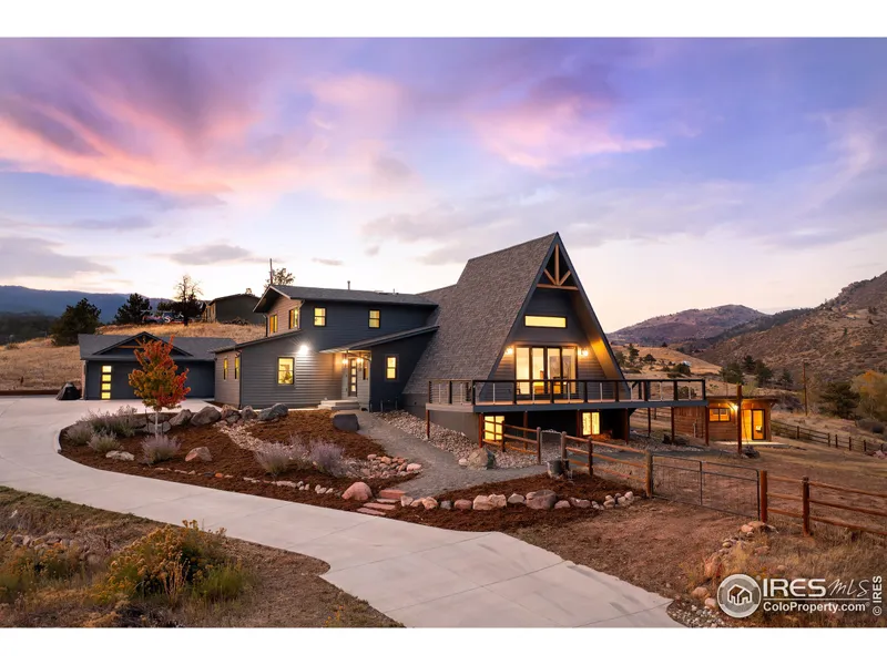 Words and photos will not adequately depict this fully renovated modern home that sits just 10 minutes from downtown Lyons. It's an architectural work of art that you need to experience in person. The Little Thompson River passes through the north side of the property. The original a-frame was completely remodeled and nearly 2,000 square feet was added to create a stunning, open and modern living experience that includes lots of windows, open beams, spacious bedrooms and fully finished basement. The main level includes a main floor bedroom suite, stunning kitchen, spacious dining area, office, laundry room and mudroom. It's an ideal floor plan and flow for entertaining and hosting guests for the upcoming holidays. The new island kitchen is spacious and will inspire the most creative chef to prepare culinary masterpieces. On warm summer evenings, prepare dinner in the outdoor kitchen and ...