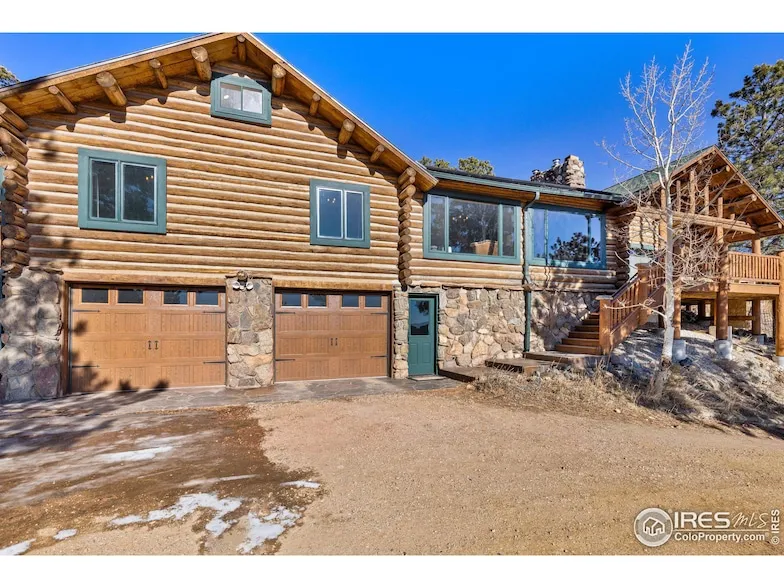 Welcome to your dream mountain retreat! This remodeled log cabin is a stunning escape, offering the perfect blend of modern updates and rustic charm. Situated on 1.3 serene acres, this property provides breathtaking views and backs to national forest, creating an unparalleled sense of privacy and natural beauty. Step onto the expansive wrap-around deck and immerse yourself in the tranquil surroundings. Inside, the living room, with vaulted ceilings and exposed beams, provides a grand yet inviting space for relaxation. The trendy kitchen with chic finishes seamlessly flows into a dining area warmed by a cozy fireplace. A sunroom featuring a stylish bar is ideal for entertaining or enjoying your morning coffee. This three-bedroom cabin also includes a versatile loft currently used for extra sleeping space-imagine the possibilities for an office, playroom, or creative studio. The back patio is a haven with a hot tub for stargazing evenings, and the Trex decking is prepped for a gazebo or fire pit with plenty of space for seating. Sustainability meets convenience with fully paid-off solar panels and a 2-car garage. Located just 30 minutes from Lyons and Estes Park and 45 minutes from Eldora Mountain, this home is perfectly positioned for adventure. Whether you're hiking, skiing, or simply savoring the mountain air, this location has it all. Don't miss this unique opportunity to own a slice of paradise where every detail has been thoughtfully designed for comfort and enjoyment. Your perfect mountain escape awaits!