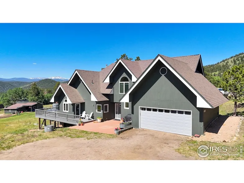 Enjoy the beauty of Sugarloaf Mountain with this close-in mountain retreat, located just 20 min from downtown Boulder. Quiet, peaceful, and set against a backdrop of truly incredible views of the Continental Divide, James Peak, and Eldora, this south-facing, light-filled home offers the perfect blend of privacy and natural beauty. The home features vaulted ceilings, hickory wood floors, a wood-burning stove, and an updated gourmet kitchen with granite countertops. The dining area opens to a freshly painted deck. The primary suite is a restful haven, with a remodeled en-suite bathroom with custom cabinetry and high-end finishes. The finished basement includes brand-new LVP flooring, a guest suite, and a small kitchen area-perfect for rental potential or multigenerational living. Horse lovers will appreciate the 4-stall barn, round pen, riding arena, and fenced pastures, as well as updated electrical boxes/fencing. The property is surrounded by endless trails, including direct access to the Sugarloaf Mountain Trailhead. The home has been maintained and updated over the years, with recent improvements including a newer HVAC system, septic system pump, hot water heater, washer and dryer, refrigerator, dishwasher, LED lighting, new garage door with keyless entry, interior paint, and stylish new window coverings throughout. Additional features include reverse osmosis water in the kitchen, generous storage above the garage, and a secondary HVAC system. An electrical transfer switch allows for easy use of a portable generator. This home is part of a tight-knit community that hosts annual events such as a community picnic, etc. There is no HOA, and the home is located within Boulder Valley School District with with a school bus stop conveniently located right at the end of the driveway. Whether you're an outdoor enthusiast, equestrian, or simply seeking serene mountain living close to town, this Sugarloaf gem offers an unmatched lifestyle.