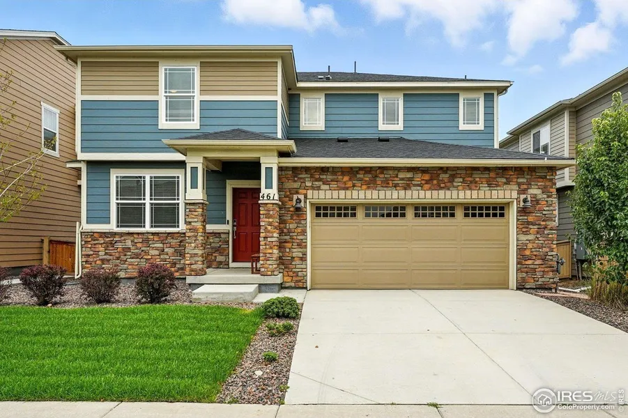 The best value in Harvest Junction! Elegant and efficient, this 2021 home pairs modern design with smart energy features. Just minutes from restaurants, Costco, and the Longmont Rec Center, the location is convenient to both Downtown Longmont and surrounding communities with quick access to 287. Soaring 9ft+ ceilings, LVP flooring, and an open layout greet you as you step inside. French doors off the entry open to a spacious office, providing an ideal work from home space. Sink into the living room and relax around the gas fireplace! The bright kitchen is a showstopper, offering a large island with seating, gas range, walk-in pantry, and access to the landscaped backyard. A mudroom off the two-car garage adds everyday functionality. Upstairs, the spacious primary suite includes a spa-like bathroom with generous shower, double vanity and light-filled walk-in closet. Three additional bedrooms, a full bath and laundry, complete the level. The unfinished basement is ready for storage, fitness, or future finishing. Upgrades include a tankless water heater plus Meritage's energy-efficient design with UV-blocking windows, spray-foam insulation, and sealed ducts for comfort year-round. This home is not in a metro district - enjoy the benefit of a new home without the added cost!