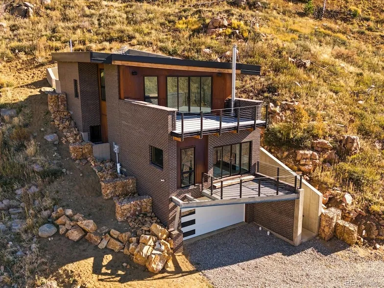 This architectural masterpiece offers a private, modern retreat that feels a world away, yet is just minutes from town. Built into the landscape, the home commands breathtaking and panoramic views from every window as well as two expansive outdoor living spaces. Inside, this fully furnished property is a sanctuary of luxury, featuring custom European cabinetry, upscale stainless steel appliances, quartz countertops and open floorplan. Serene living anchored by a heart of the house kitchen and sweeping views from the floor to ceiling windows. It truly feels like you are outside even while cooking dinner or enjoying morning coffee. Tastefully designed to showcase the stunning views in every single room. The main floor primary suite provides a personal escape with a large walk in closet, stunning 5 pc bath with freestanding tub, spa like shower and custom tile accents. Expansive wide plank hickory wood floors throughout and a grand staircase that leads you to a phenomenal upper level featuring two additional bedrooms, an office area and upper level family room with a wet bar designed to soak up the views. Gorgeous rooftop deck providing unbelievable picture perfect livable art of Four Mile Canyon and Sugar Loaf Mountain. Set on 2.46 acres this property is private, has stunning views, is close to Downtown Boulder and provides ample opportunity for hiking, biking and simple yet pure enjoyment of Colorado Mountain living. This is more than a home it s an unparalleled lifestyle opportunity. Work from home? No problem... fast internet speeds and wonderful work areas will make working from home a dream come true. Commute to Boulder? No problem..... a quick 11 mile drive to the heart of Boulder. Looking for a second home?... Close proximity to the metro area yet close proximity to Boulder activities make this the perfect option for an escape from reality. Steps from hiking trails and close to Four Mile Creek, Just one mile up from scenic Four Mile Canyon Drive.