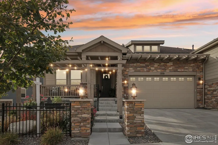 Looking for a newer, low-maintenance patio home in Superior, CO with mountain views, backs to open space and has solar power? Welcome to 1370 Lanterns Lane in the Lanterns at Rock Creek community, offering the perfect blend of luxury, convenience, lock-and-leave living, ideal for anyone seeking effortless Colorado comfort near Boulder and Denver. This 3 bedroom, 3 bath + office paired patio home welcomes you with bright, open spaces, 10' ceilings, & refined upgrades throughout. The main level features engineered hardwood floors, quartz countertops, & a custom Carrara marble backsplash hand-selected for timeless elegance. Pottery Barn pendant lighting elevates the design, while the dining area opens to a partially covered deck with Bear Peak mountain views, the perfect spot for morning coffee or sunset gatherings. The main-level primary suite feels like a spa retreat, featuring a Closets by Design walk-in closet & luxury bath finishes. A private office with glass-pane French doors provides a quiet workspace. Designer details: 3" baseboards, wood window sills, Pottery Barn curtains add a polished finish. The garden-level basement expands your living space with south-facing windows that flood the area with natural light. It's plumbed for a future wet bar & ideal for guests, hobbies, or multi-generational living. This home is built for modern sustainability with owned Tesla solar panels, a Tesla charger & low electric bills. The oversized 2-car garage includes overhead storage racks for maximum organization. Enjoy true lock-and-leave living with an HOA that covers all exterior maintenance: roof, siding, paint, landscaping, watering & snow removal. Located minutes from Downtown Superior, Flatiron Crossing & Boulder's best trails, this home combines energy efficiency, style, & convenience. For buyers searching for Superior CO patio homes for sale, energy-efficient homes near Boulder or low-maintenance Colorado homes with solar, this home stands out as a rare opportunity.