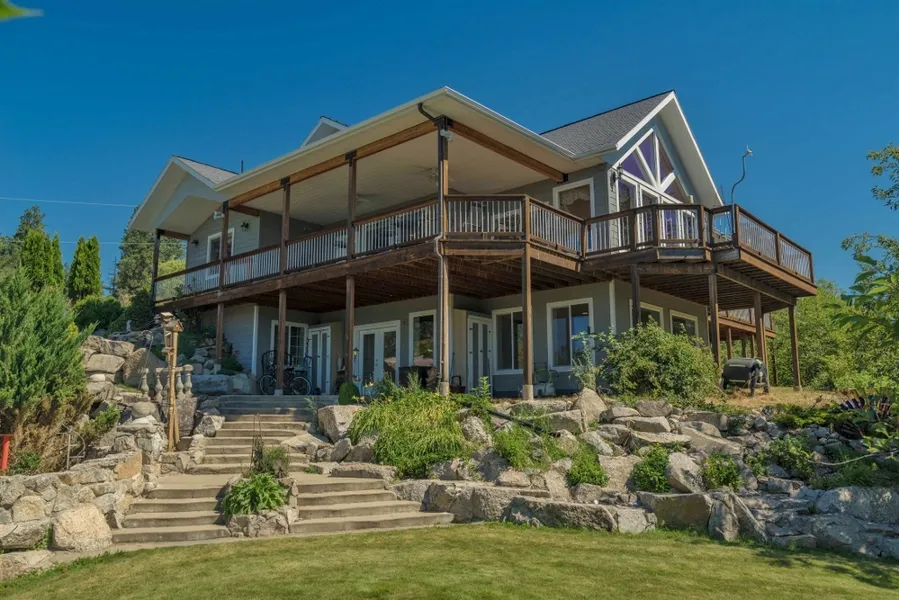 No other property like this in the City of Bonners Ferry. Almost 5000 sq. ft. of quality, comfort, park like beauty with outstanding views of the mighty Kootenai River. House opens to a large foyer and from there flows into a large dining room, amazing kitchen, living room and sun room. Three exits from this part of the house leads to a covered, wrap around deck, that opens to unique and picturesque river and mountain views. Large living area windows share these same views as does a window from the large kitchen area. Two Master Bedrooms grace the dwelling on main floor and in the lower area of the walk out basement. Super large exercise room, well lit with natural light through large windows, makes workouts more pleasurable as you view the scenery of nature. Landscaping on this property is the result of years of labor and love. Park like setting. Spacious lawns, mature willows and score...