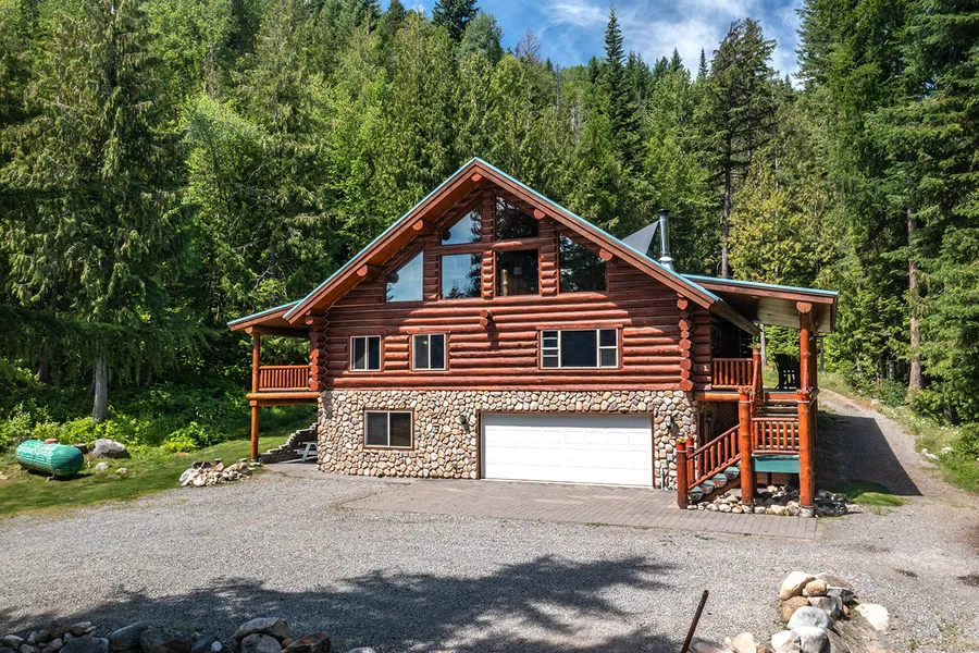 Relax to the sound of Snow Creek rushing past this impressive Caribou Creek log home boasting timeless granite, Hickory cabinets, gorgeous wood floors and rock fireplace. This 5 bedroom, 3 bath beauty features a chefs dream kitchen, main floor suite with lux bath, spacious loft & a floor plan that provides ample space for all, including two covered decks to take in nature's symphony and beauty. Meticulously maintained and updated, offering the right mix of form and function: radiant floor heat, wood stove, stair lifts that also serve as dumbwaiters 4000 KW generator, two-car attached garage plus a 24x48 heated shop with bath ready for guest quarters. All privately sited on 17.25 acres with trails, garden, year-round creek, waterfall & pools, very close to National Forest, State land and wildlife preserve. No need to compromise-quality, comfort and accessibility are yours here on a county-maintained road, convenient to Sandpoint and Bonners Ferry.