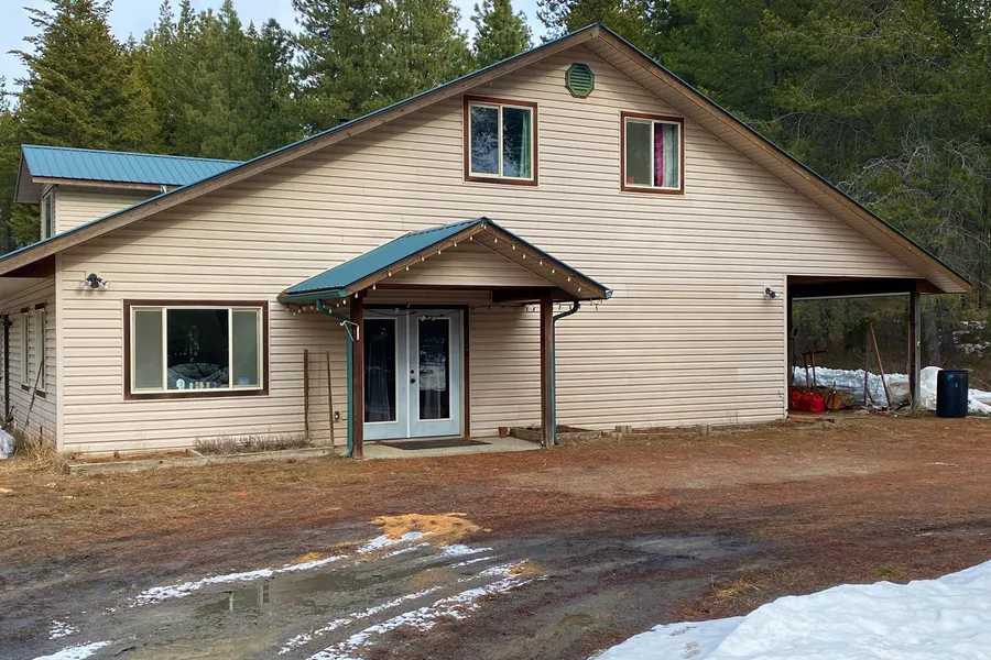 Perfect home for extended family! Over 4,000 SF expansive home on 9.88 acres North of Sandpoint in Naples. Second level main home with wood and carpeted floors, 3 bedrooms, 2 full baths. Large kitchen, pantry, and living area overlooking the trees and animals in the backyard, garden area and fruit trees. Downstairs has over 2500 SF of living space, 2 bedrooms completed, kitchen, dining and living area and two bathrooms, craft, office and exercise rooms plus lots of storage. Home is heated with two wood stoves and electric heat.