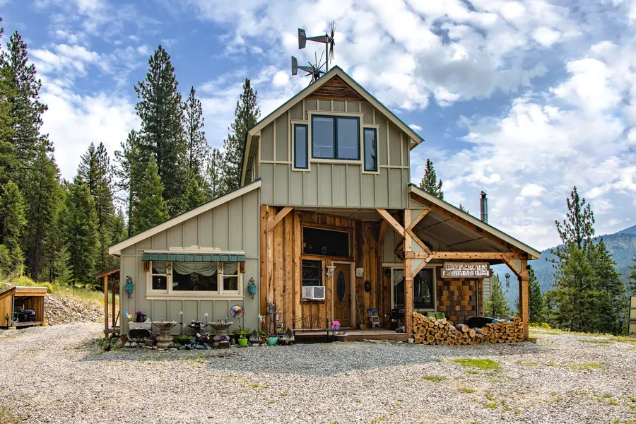 AWESOME WELL-BUILT HOME NESTLED IN THE MOUNTAINS OF NORTH IDAHO! Completely Unique custom-built home on a 42.6 ac. Timbered, 2000ft Hwy 2 frontage, 2000 ft. Kootenai River frontage remote property with several building sites and spectacular Views. Seller is a retired custom builder / developer craftsman construction and finishes, estimated 950 sf 'Pole Barn Frame Style' currently finish 1bd / 1 bath downstairs with full plumbed and wired unfinished additional 2bd. / 1 bath upper lever. (Potentially 3bd, 2 bath residence / office / community building / etc.) State of the Art solar system off-grid package :30 kw lith. iron phosphate battery storage /20 -325watt /48-volt solar panels and 2-1600 w/ 48-volt wind turbines with backup generator, 22 gpm well. This property has unlimited potential, a remote hide-a-way to a private RV / tiny house / family vacation retreat or whole family compound...