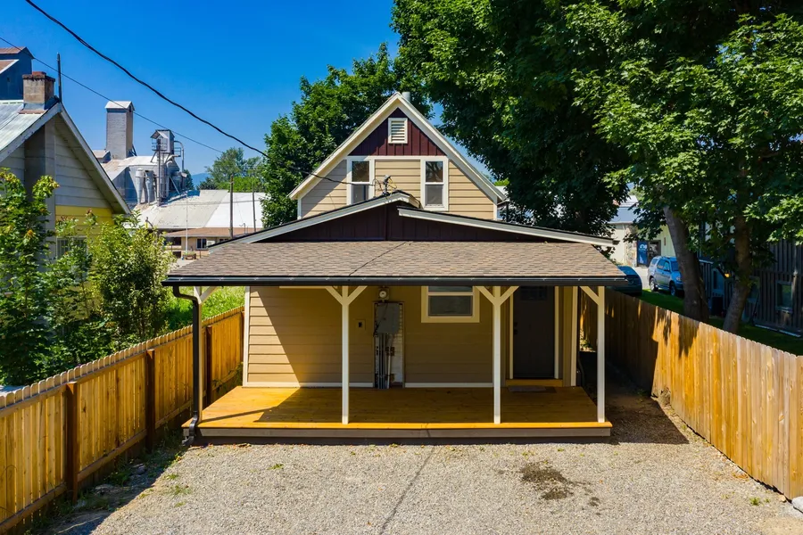 Seller will finance! Charming home in historic downtown Bonners Ferry. Immaculate and freshly remodeled this property is ready to go! Privacy fenced on both sides with a small lush front yard and parking in the back. Covered porch entrance in back to the large open kitchen with LVP flooring throughout. SS appliances and island with butcher block top. Tiled backsplash and solid hickory cabinets. The entire house has solid wood trimming around windows and doors. The open living room has a gas fireplace and room for the entire family. Laundry room with stacked frontload washer & dryer. Full three piece bathroom with tiled tub/shower surround. Upstairs has two large bedrooms with new carpet. Totally turn key and ready to make it your own. Perfect for a rental property or to live in year round. Easy lawn maintenance and quick access to everything Bonners Ferry has to offer. City services for ...