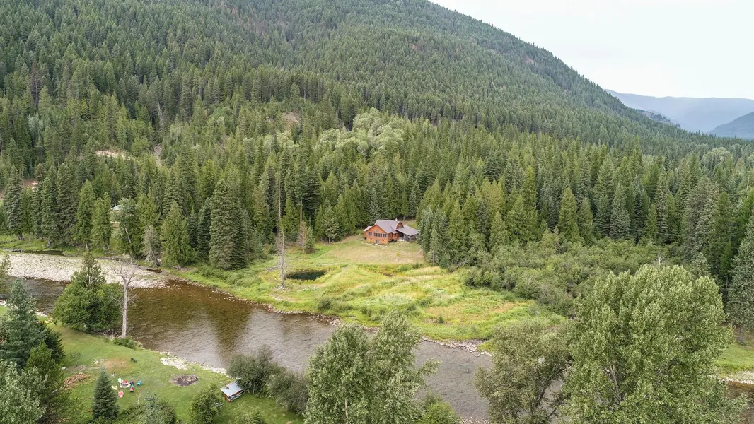 440 feet of Moyie River frontage w/ a 3259 sf Log home (2002sf finished and 1257sf unfinished)! This beautiful 4bdrm/2.5bth home sits on heavily wooded level 10 acres! Home was remodeled in 2007 and features a great room w/ vaulted T&G ceilings, freestanding wood stove & brand new Hickory wood & tile floors, Main Floor Master w/ jetted tub & shower. Country kitchen/dining w/ brkfst bar, full unfinished walkout basement. Att. carport, guest cabin & shop. Round Prairie Creek flows thru the property & a year round pond with fish, all on the shores of the Spectacular Moyie River! High Speed Microwave Internet, so work from home!! End of the road privacy & year round recreational opportunities make this the perfect home for those who want to get away from it all and enjoy the best of N Idaho!