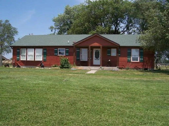 Horse property with automatic waterers to stalls. 2 ponds, 2 brome fields, 1 praire field, cross fenced. large hay barn is concrete block. 2 Lg foaling stalls in this barn with additional hay storage. Newer barn has 5 stalls on concrete with rubber mats and individual runs. 3 additional stalls with runs off machine shed. Tack room in newer barn has heat & A/C and is insulated. Whirl pool in Master.