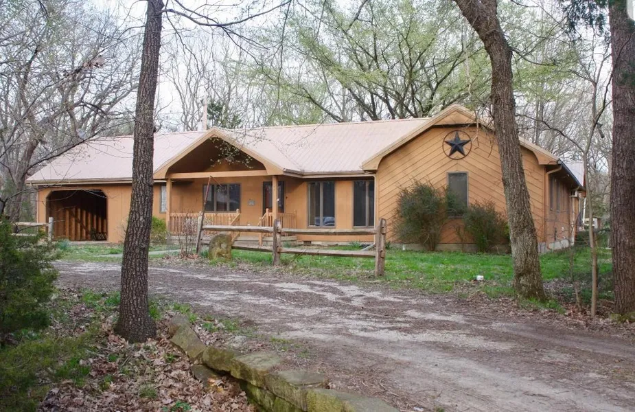 Environmentally friendly & handicap friendly design, newer metal roof, wrap-around deck for outdoor living, indoor heated Ozone pool (uses hydrogen peroxide, but can use chlorine). Private retreat-like setting, creek, pond, turkey, deer & other wildlife. Open kitchen/living area, pantry & peninsula in kitchen. Den area south of LR could be partitioned for 3rd BR. Man-cave, she-shed, apt. or office area finished and heated area in det. garage or BR/bath & has washer/dryer connection. 2 car garage with attic storage plus 2 separate 1 car carports. Built-in microwave/convection & separate oven, Genn Aire cook top w/grille.3/4 bath just off indoor pool area.