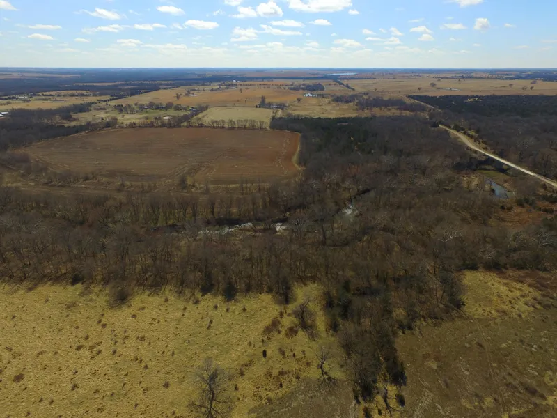 This Bourbon County beauty totals 160 acres more or less and checks all the boxes for the discerning hunter. A wide stretch of Paint Creek dissects this parcel, flanked by monstrous hardwoods from east to west. The southwest quadrant of this property features an awesome mix of red cedars and big native grass providing for an exquisite and very private bedding area. The south-central portion contains approximately 30 acres of good tillable farmland with soils comprised of tremendously productive Verdigris Silt Loam and Wagstaff Silty Clay Loam. The north side of the parcel is brushy pasture providing more bedding area as well as a buffer from the north road. There are multiple excellent locations for the addition of food plots throughout this tract with a top choice being along the east edge in a former tillable field bordered by the creek and big timber.