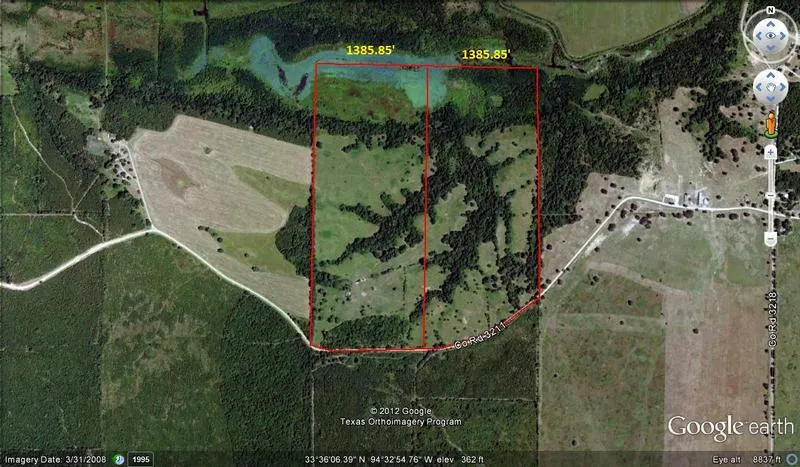 196.5 ac located in Bowie county north of Dekalb,Tx. This is one of the prettiest tracts around the area, with rolling hills and the best duck slough you can find on the back of the property. It is 1/2 mile from Red River located next to large row crop farms which makes the deer and duck hunting great. A 4 ac lake was dug on it early this year but as most there hasnt been alot of rain, but it will be really nice when full, also planted about 60 acres pine trees in most of the fields you see on the photos for extra cover for deer and left some areas open. If desired it could be turned back into pasture while the trees are still small, has really good grass.