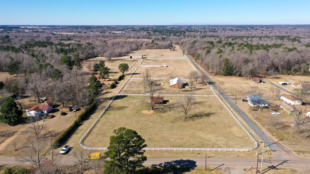 Old World Charm meets the tranquility of the East Texas countryside at this impeccably designed wood cabin property. Sitting on 32.75+- acres minutes from Texarkana, this 3 Bedroom/2 Bath 1780 sq ft home offers plenty of space to spread out just moments from the convenience of the city. Large front porches welcome you into the immaculately kept space featuring wood beams, shining wood floors, thoughtfully placed archways, and so much more. The kitchen is well appointed with beautiful wood cabinetry and stainless appliances including a gigantic Frigidaire Professional refrigerator and a Frigidaire Gallery double oven/stove combo. A gorgeous cedar plank countertop is the crown jewel of this world class kitchen. The massive master suite includes a dream walk in closet and bath with an oversize double head tile shower. Attention to detail and design are apparent around every corner. Outside enjoy entertaining around the fire in one of the many hanging swings. This farm was very well designed for higher end horse and livestock ranch with well thought out entry and exit lanes down to livestock watering troughs all centered around a massive 40x80 shop/barn for storing or housing all of your farm and ranch needs. The property is fenced and cross fenced with over a half a mile of road frontage, 3 access entries, and so much more! This is truly a unique find so don't wait, call Susan Jackson with Century 21 at 903-720-7517 for more information today!