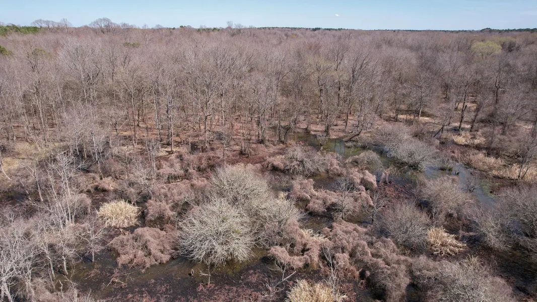 This duck and deer hunting property is located on a county road and has access to electricity. Mud Creek runs the border along the south side of the property and creates a couple slough areas that offer duck hunting and could be improved. As you can see from the aerial photo, part of the property is on the north side of the county road where you will find electricity and a great place to build a camp or country home. The property also has a lot of deer sign in the thick brush and wooded areas.