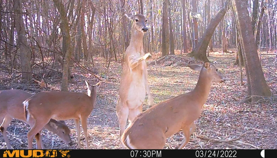 Excellent hunting ranch, with lots of whitetail deer and feral hogs, and occasionally, an Eastern Wild Turkey. Property's south boundary is a live creek (Mud Creek), with 725+ feet of running water to enjoy. Enjoy a little fishing, with turtles on every log. Property comes with a nice buddy stand for a Father & Son to enjoy, shooting lanes, in a big beautiful hardwood bottom, with lots of varied oak trees, which produce ample soft mast acorns in the fall of the year. Property has places for a couple of more deer blinds. Put out corn and the hogs will come, with sightings in the daytime too. Property ONLY has 2 tenths of an acre that are not in the FEMA flood plain. It does have ample "high ground" for a RV or cabin along the North boundary. In past, the Northern portion of the property has not been under water from flooding rains. Come check this property out, it won't last long.