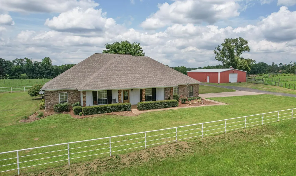 This custom home and horse property sits conveniently located just outside of town. The Western Style home is a brick construction 4/2.5 with attached garage and large back porch overlooking the in-ground swimming pool. The home has a large stone fireplace and custom wood accents throughout to add warmth and charm. The kitchen has stainless appliances, with a double oven, as well as a large pantry and a breakfast area. Off the kitchen, you will find a formal dining room and foyer, that connects to the living room. The character continues through the rest of the home with wooden doors and trim, in the bedrooms and bathrooms. The outside amenities include and underground storm cellar, pipe fencing and an asphalt driveway. The horse barn is well thought out with a bay door on either end, a tack room and four Priefert horse stalls leading to the outside pens. There are multiple pastures with...