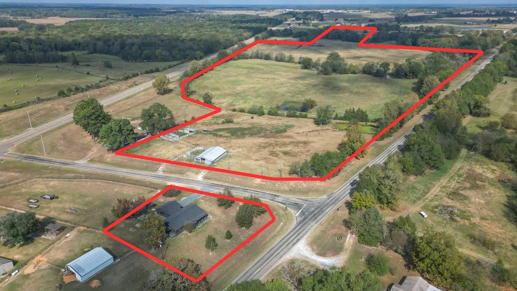 Beautifully remodeled 3-bedroom, 2-bath farmhouse with 75+/- acres, blending timeless charm with modern updates. Perched on a hillside, this lovely home boasts neutral paint tones, new flooring, a new roof, energy-efficient windows, updated light fixtures, and more. Sunlight floods the interior through numerous windows, highlighting the spacious kitchen with ample cabinetry, a convenient island, new stainless steel appliances, and an eat-in bar. A centrally located bathroom offers abundant storage, while an additional bath located just off the mudroom features a convenient custom tile shower. The attached two-car carport provides covered access into the home, giving you peace of mind during inclement weather. Enjoy the new landscaping, relax on the covered back deck, or unwind on the charming front porch. The home is situated on 0.50 acres and the additional 74.96 acres is conveniently located across the road and offers breathtaking views from the scenic hillside. This expansive property is fully fenced, cross-fenced, and features a barn, animal shelter, and working pens. With convenient access from FM 44 W and US Hwy 259 S, you can easily access the barn and working pens as well as the pastures which are perfect for grazing or hay production. Anderson Creek and 4 ponds located on he property provide natural water sources for livestock and horses. Hunters & wildlife enthusiasts will appreciate the abundance of white-tail deer and other game that frequent the property. Rural water and electric service are available at the barn. Don't miss out on this unique opportunity! Please contact Misty Toliver (903)748-3380 for more information.