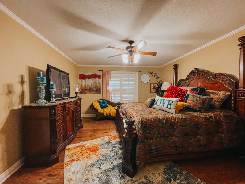 Wake up to a stunning interior in this alluring 5 Bedroom, 4.5 bath brick home located in Pleasant Grove. Over 5317 sqft, features high ceilings, stylish kitchen with custom cabinets, double ovens, island and lots of storage, office, media/ bar room, large primary suite with fireplace, incredible walk-in closet, walk-in shower and jetted tub, other bedrooms have walk-in closets and bath's attached. This home has beautiful flooring and touches throughout! Escape to the backyard paradise with sparkling gunite pool & attached spa with & covered outdoor patio with built-in fireplace & cozy fire pit. All perfectly maintained and built with an obvious attention to detail. This a must see!