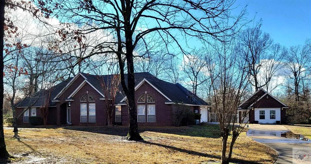3 bedroom, 2 bath brick home in the Redwater School District. Split bedroom arrangement, large kitchen with island, formal dining and a nice fireplace in the center of french doors leading out to the covered patio and backyard. The primary bath has a jetted tub, separate shower, long vanity with double sinks, and 2 walk in closets. The guest house has a bedroom, full bath and a living area. Plumbing is pre installed if you would like to add a kitchenette.
