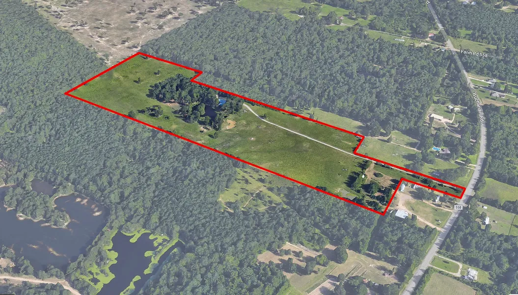 This beautifully updated, move-in ready 3-bedroom, 2-bath ranch-style home offers both comfort and functionality. Boasting a spacious sunroom that spans the entire length of the house, complete with 2 AC units and atrium doors leading into the main living areas, this home is perfect for entertaining. The kitchen is a chef's dream, featuring soft-close shaker cabinets, granite countertops with bar, and newer stainless steel appliances, including a smart, efficient two-drawer dishwasher. The utility room offers plenty of storage and durable concrete counters. Cozy up to the wood-burning fireplace with a natural edge mantle in the living room, while enjoying the easy maintenance of vinyl plank flooring throughout. Freshly updated bathrooms add to the beauty of this home. The property sits on 40 +/- acres, partially fenced with barbed wire, featuring 2 ponds, cattle guards, and RV parking with hookups. The brick home has a metal roof, a two-car carport, and includes two storage buildings, providing ample space for all your needs.