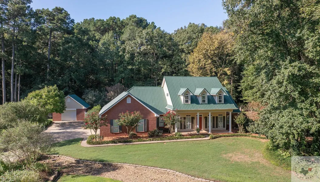 This stunning property feels straight out of Southern Living magazine, offering both charm and functionality in every corner. With over 3200 sqft of living space, the main house is designed with a thoughtful split-bedroom arrangement, ensuring privacy and comfort for all. As you enter through the foyer, you'll be greeted by a spacious dining room with a butler's pantry, setting the tone for elegant entertaining. The tile flooring flows seamlessly throughout, leading you to the cozy living room with a corner fireplace. This room opens up to the kitchen, which boasts granite countertops and custom cabinetry. The open layout offers lovely views of the backyard, bringing in natural light and creating an inviting space to gather. One of the standout features of this home is the large sunroom, where you can relax and enjoy the wonderful views of the backyard. The master bedroom is generously sized, and the ensuite bath is a true retreat with separate vanities, dual walk-in closets, a soaking tub, a walk-in shower, and even a storm shelter for peace of mind. Bedrooms 2 & 3 are spacious, with a well-appointed hall bath featuring a tub shower combo. Upstairs, there's a large multi-purpose room perfect for a game room or additional bedroom, complete with a large closet for storage. For convenience, there’s a half bath for guests up & downstairs. We have a double garage and separate single garage. The 2 story 3,700+sqft wood shop is a true bonus, with space for a guest house. A covered flagstone patio overlooks the gorgeous pond filled with aquatic life. Home is not in a flood zone.