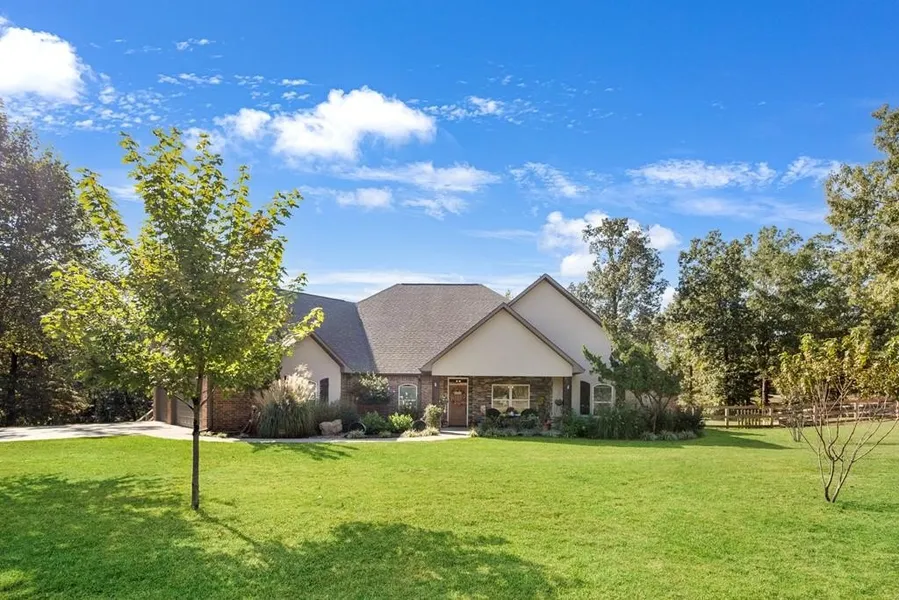 Welcome to this stunning 3 bedroom, 2.5 bathroom custom home with an office and a large shop that is tucked away on 1.21 beautifully treed acres in the highly desired Redbridge Subdivision. Designed with both comfort, functionality, and ecofriendly in mind, this home offers an open layout that seamlessly connects the living, kitchen, and dining spaces—perfect for entertaining or relaxed family living. The designated dining room and private office with closet provide flexible spaces for work or gatherings, while custom finishes and thoughtful touches give the home a warm, refined feel. Enjoy year-round efficiency and comfort with upgraded attic and wall insulation, instant hot water, and a high-tech video surveillance system surrounding the property for added peace of mind. Step outside to your private, tree-lined backyard where an inviting covered patio with a cozy outdoor fireplace set...