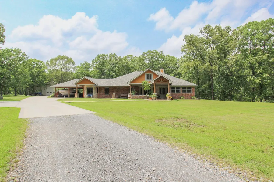 Secluded serenity awaits at 6182 FM 1398 in Hooks, Texas. This private gated estate boasts over 17 acres of both wooded and open land, providing the perfect blend of natural beauty and modern comfort. Major upgrades were completed in 2010 to enhance this already impressive property. Step outside onto the covered back patio with its rock fireplace and massive wood beam columns for a cozy evening under the stars. Inside, you'll find a spacious den perfect for entertaining guests or relaxing after a long day. The massive kitchen is equipped with everything needed to prepare gourmet meals while the formal dining room provides an elegant setting for dinner parties. A separate 40x60 shop includes a convenient office/living area measuring 16x18, ideal for those who work from home or need extra space for hobbies or storage. Whether enjoying nature on your own acreage or retreating inside to enjoy all this estate has to offer, it's easy to see why this property is one-of-a-kind!