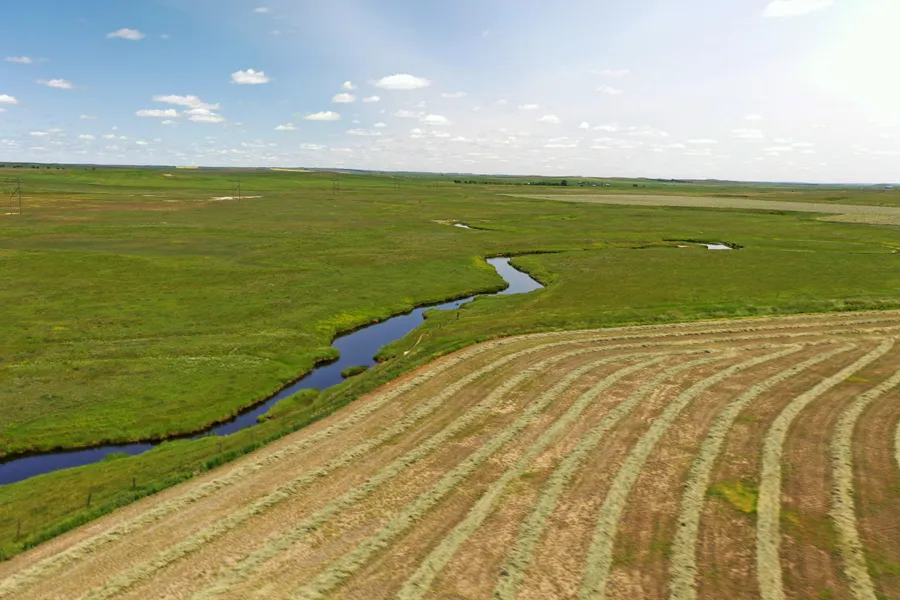 This parcel features nearly 175 +/- acres of productive cropland and a central Buffalo Creek-fed pasture with native grasses. It offers a well-rounded blend of cropland, pastureland, and hunting possibilities and is accessible from the main road in the northwest corner. The cropland is fenced separately from the pasture, allowing for enhanced management. With its multi-use potential, this parcel is an ideal choice for summer grazing on the grass and fall grazing on the stubble.