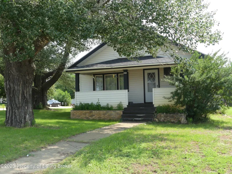 One story home, lots of potential to create a charming home, with two bed rooms, two baths, large eat in kitchen plenty cupboard space. Large two car garage, Private front porch, Nice corner lot with beautiful shade tree. Great location.