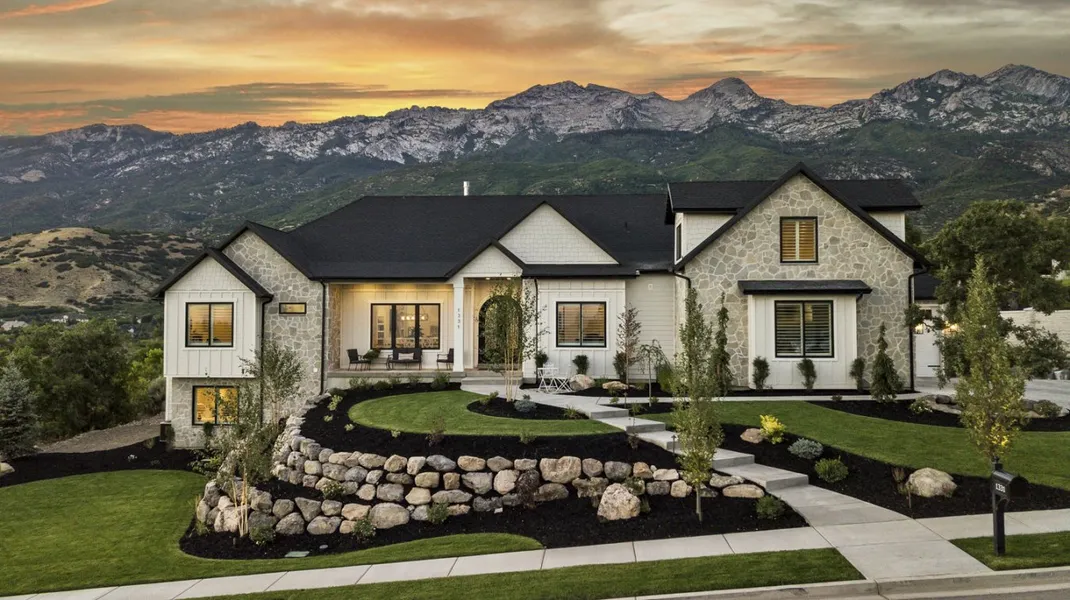 Brand new modern masterpiece with exquisite finishes just built-in 2020 exhibits a masterful application of proportion, scale, materials, and indoor-outdoor relationship in order to create a home that is aesthetically stunning and speaks to the heart. Walkthrough the front door and it will take your breath away with an open floor plan and strategically placed windows that interact with the surrounding landscape to showcase views of the expansive mountain vistas to the north and adjacent open spaces and unobstructed views of Utah Lake to the south. Inside this private mountain retreat experience the open feel with vaulted ceilings, beautiful wood beams, rustic hickory floors, reading nooks, quartz countertops, perfectly planned out kitchen and a large tucked away pantry. the office features a hidden room, gorgeous built-ins and unique metal and glass French barn doors. The master suite located on the main floor is enhanced with even more incredible views, a gorgeous en-suite bath with a large shower, and a free-standing tub. Also on the main floor is an additional large bedroom with an en-suite bath and a large design studio which would be perfect for running a business or used for another main level living area. Extra-wide hallways and beautiful stairway that leads to multifunctional loft space with views on 3 sides and another large bathroom. Gather around the two way fireplace in the great room or entertain on the oversized fully covered deck around the outdoor fireplace. The built-in sound system throughout the main level allows you to set the mood with your favorite music. Full daylight basement with kitchenette, 6 huge bedrooms, and a walkout. Oversized garages and RV parking. The backyard is terraced and ready for you to add your own touches. There are even animal rights and Jellyfish lights! From hosting the smallest to the largest of gatherings, there is something for everyone. Just 20 minutes to I-15 yet tucked away in the quiet mountains of Alpine, there's no need to wait to build, this home is move-in ready. Square footage figures are provided as a courtesy estimate only and were obtained from building plans. The buyer is advised to obtain an independent measurement.