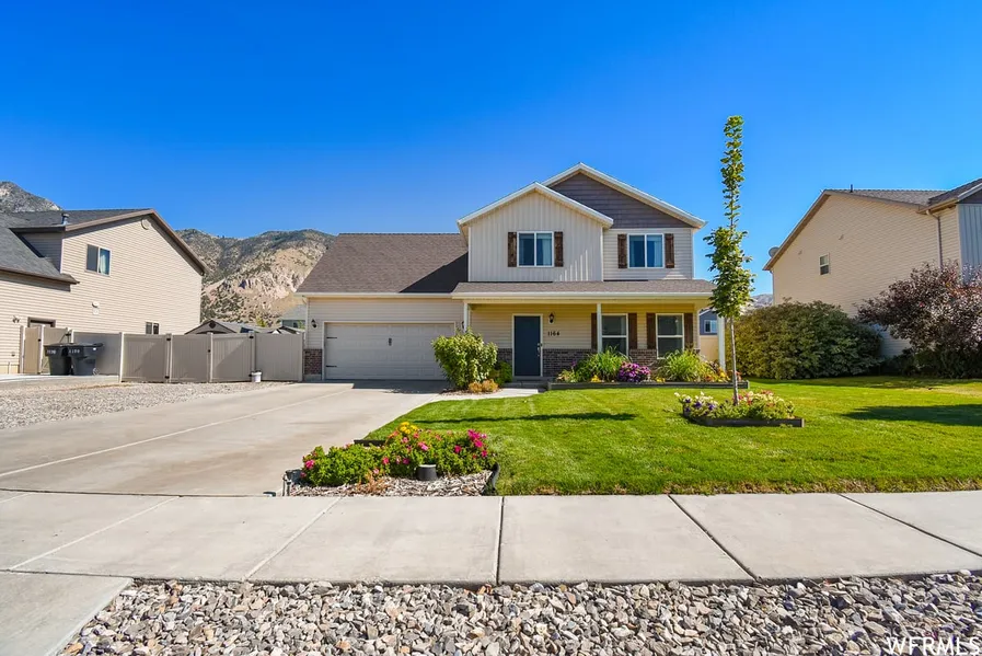 ADORABLE 2 STORY with beautiful MOUNTIAN VIEWS. This home is packed with all the right touches and features. These features include new 50 gallon water heater, new carpet, LVP flooring, new paint, new dishwasher, new herringbone pattern tile by front door, smart thermostat and video doorbell. oversized pantry. raised garden boxes, automatic sprinklers and large shed. The backyard space is not just scenic but, a great place to enjoy with family friends and pets. The play gym is included. Fiber optic internet is available for $30 a month, if desired. The mountain views are incredible and the home has been meticulously cared for.