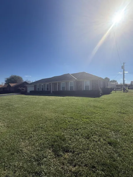 Welcome home to this beautifully maintained brick ranch that perfectly blends comfort, character, and convenience. This one is hitting the market just in time for you to settle in for the holidays! Step inside to discover a spacious main living area featuring stunning vaulted ceilings with exposed beams that add warmth and texture to the space. New hardwood floors flow throughout the living area, leading to backyard access that's ideal for entertaining or enjoying a quiet evening outdoors. The kitchen and laundry area have been meticulously cared for, offering functionality and timeless appeal. You'll love the generously sized bedrooms, each filled with natural light, and the flexible layout that provides room for a dining area and home office. Outside, enjoy a beautifully landscaped yard with plenty of space for kids to play or to host gatherings with family and friends. The large garage provides ample room for parking and storage. Additional highlights include a brand-new roof and HVAC system, giving you peace of mind and low maintenance living. Nestled in a quiet neighborhood just minutes from shopping, dining, and everyday conveniences, this home is move-in ready and perfect for first-time buyers or those looking to downsize without compromise. Don't miss your chance to call this charming property home-schedule your showing today!