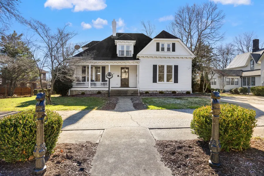 Located on the corner of East Lexington Avenue-one of Danville's oldest streets-this beautifully preserved historic home blends timeless character with modern comfort. The four-bedroom, two full bath, two half-bath home showcases original details throughout, including four coal-burning fireplaces, rich original wood trim, pocket doors in the dining room, and soaring 14-foot ceilings. Thoughtful updates bring the home seamlessly into the present, with a tastefully renovated kitchen and updated bathrooms. The primary suite is conveniently located on the main level, while three generously sized upstairs bedrooms provide plenty of space for family, guests, or home offices. Enjoy the vibrant, walkable lifestyle of downtown Danville, all while having the privacy of a fully fenced backyard and side yard-perfect for relaxing or entertaining.