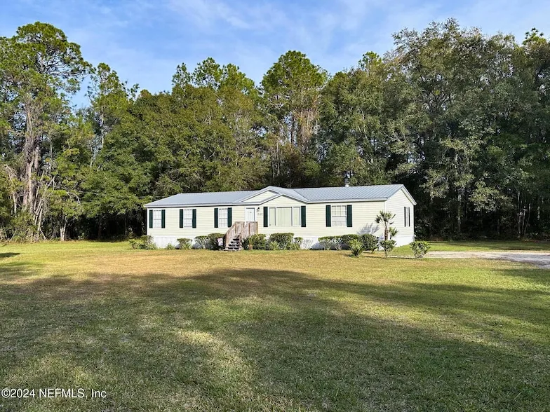 Turn key and enjoy country living in this 3-bedroom, 2-bath mobile home on nearly 2 acres just outside the city of Starke. Inside, you'll find a spacious split floor plan, newly painted, with updated laminate flooring throughout the home. The open-concept living and dining area features a cozy fireplace, the kitchen has ample counter space and cabinets in addition to a separate laundry room and newer water heater. Step out back to enjoy a covered deck, ideal for relaxing in the natural surroundings and privacy. This property offers the tranquility of rural living while being just a short drive from the conveniences of Starke. Easy commute to Gainesville or Jacksonville.