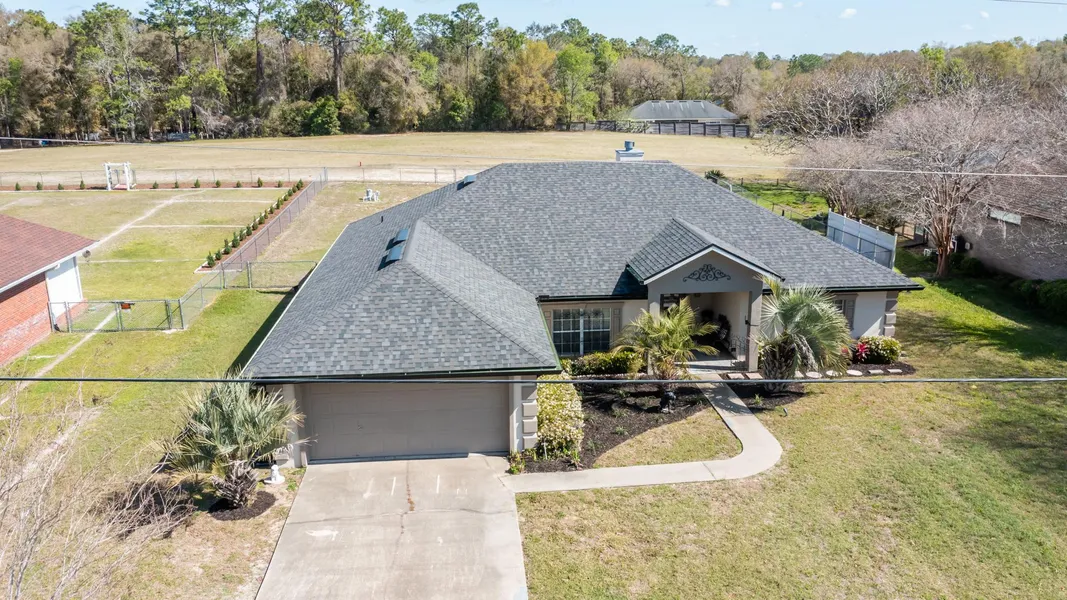 Welcome to this elegant 4-bedroom, 2-bath home nestled in one of the area's most prestigious neighborhoods. With solid concrete block/stucco construction, this residence exudes quality and durability. The open floor plan is ideal for family gatherings, featuring a cozy fireplace, soaring cathedral ceilings, and and stunning access to the screened-in lanai, perfect for outdoor living and entertaining. The owner's sanctuary is an expansive retreat, offering ample room for additional furniture and a large walk-in closet. The luxurious en-suite bath is complete with a soothing soaker tub and a walk-in shower, providing a true spa-like experience. Additional features include a fenced backyard. providing privacy and space for outdoor activities, as well as a generous laundry room and an oversized two-car garage. A brand0new roof installed in 2025 ensures peace of mind for years to come. This h...