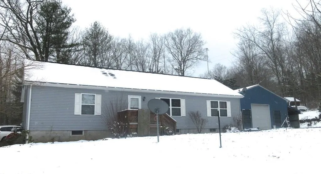 Great Location!! 3 bedroom,2 bath ranch on 1.25 ac. Master en suite w/ double sinks ,double closets + walk in closet! 1st fl. laundry, eat in kitchen, dining room + cozy living room. All OGM rights convey(average 2k royalties per year) This property also has a separate home that rents for $450 per month to offset your mortgage payment.. Extra storage in the full walk up attic + full basement that can be easily finished. Relax on the covered porch, work in the garden or tinker in the massive 60x32 pole barn!! In addition to the pole barn there are2 lean 2's blacktop driveway