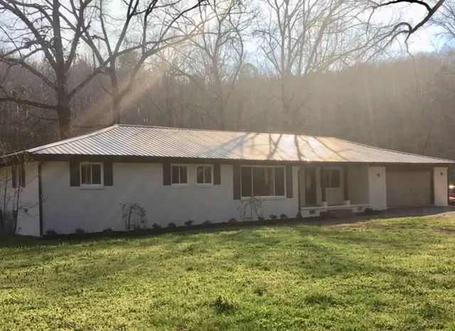 fireplace and shiplap. 2.43 private acres and a creek. Peaceful setting.