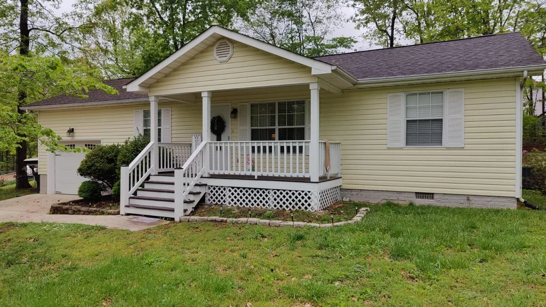 Beautiful, well maintained and updated 3 bedroom, 2 bath home on 1 acre with fenced in backyard. Covered rocking chair front porch and vaulted Sunroom overlooking fenced backyard and deck. Laundry room off of Garage and eat in Kitchen area. Lots of extra storage in garage. Seller updated the deck and and front porch, put new flooring and new paint throughout the whole house and sealed the crawlspace.
