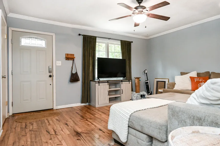 Looking for space in a convenient location? Come take a look at this ranch style home with full finished basement. Just outside the city limits saving you city taxes yet close to all amenities. The main level features 3 bedrooms. The nice sized kitchen features stainless appliances, space for dining and a door leading out to a nice deck. The full finished basement has lots of potential including separate living quarters with it's own entrance. Large open living room space, full bath and a flex room previously used as a bedroom.
