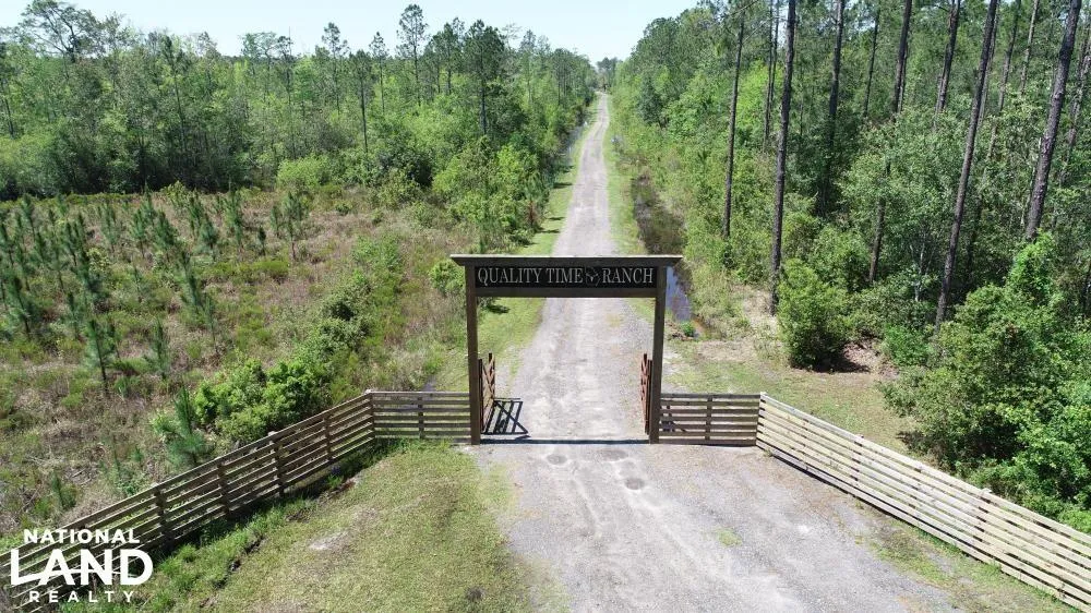 Appropriately priced at recent appraisal value. Quality Time Ranch is an extremely rare turn-key recreational get-a-way. This 953-acre ranch is set up and ready for the new owners to enjoy immediately. Designed for the outdoorsman in mind, it has miles of trails, food plots, and even a duck impoundment. Fish out of two stocked ponds, or enjoy freshwater fishing in several miles of creek frontage running throughout the property. The current owners have been very detailed in the layout of the property. The 3BD/2BA cabin sleeps seven comfortably. Recently renovated in 2021, it now includes a wrap-around porch and a back deck overlooking a pond. The owners also added a 6,790 SF pole barn for storing equipment and a lake shelter with a floating dock next to the big pond. The cabin comes equipped with a Cummins backup generator providing off-grid power in catastrophic times. Combined with seclusion it creates the ultimate safe haven. The extensive fence and electric gate establish a grand entrance that leads down a half-mile gravel road into the compound. The two caretakers that oversee the property can continue if the new owners desire. Conveniently located forty-five minutes to St. Simons Island, GA, and one hour and fifteen minutes to Jacksonville, FL. Some furniture and equipment can be purchased as well. Please inquire with the broker for a copy of the appraisal or to line up a tour.
