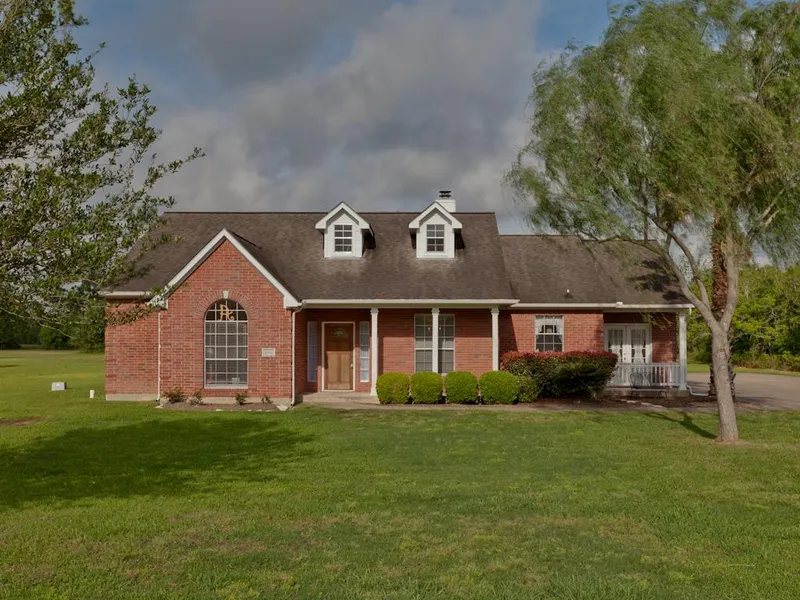 Custom home on cul-de-sac has cleared 2 acres w/treeline for privacy! No Flooding! Open Floor Plan w/Captivating Views from Every Window! 3 concrete slab covered porches: 3x16 front, 15x11 back & 8x5 off breakfast nook. Side-Entry Garage has workshop w/sink & fridge area. Master w/garden tub & separate shower. Walk-in closets. Jack & Jill bathroom shared by 2nd & 3rd bedrooms. Spacious family room has wbfp & wired for surround sound. Easy commute to Houston & TX Medical Center via Hwy 288. Quiet community w/playground, basketball/tennis crt & lake.