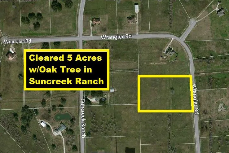 Cleared 5 Acres w/Nice Oak Tree in Horse-Loving Suncreek Ranch by FM 1462 & FM 521. Quiet community w/custom built homes & acreage, playground, tennis/basketball court, jogging/horseback riding trials & lake. Quick commute to downtown Houston, TX Medical Center, Pearland, Sugar Land & Lake Jackson via TX-288 & proposed Grand Parkway/Hwy 99 connecting I-45 to I-69. Bring your horses & spend nights gazing at twinkling stars without city light pollution. Breathe open clean air without the city smog. Low Taxes! Suncreek Ranch is Deed Restricted, but allows 1 horse, sheep, goat or cow per acre. No Manufactured or Mobile Homes Allowed! Well & septic will need to be installed! There is No Sign on Lot! GPS Coordinates: 29.347570, -95.478090