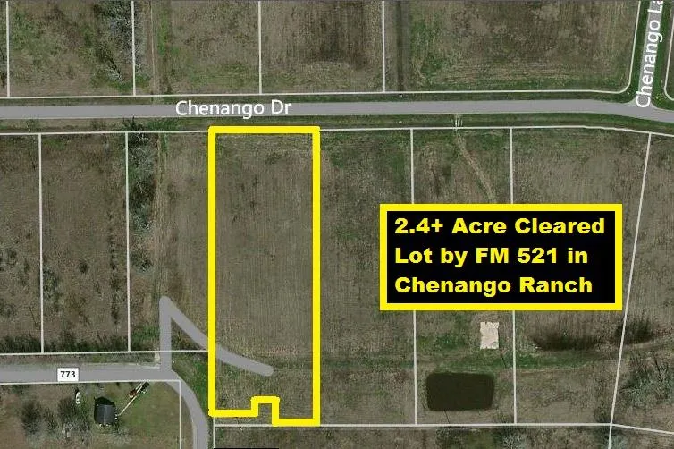 New Price! Residential Cleared 2.46 Acre Lot by FM 521 in Horse Loving Chenango Ranch. Nice Deed Restricted Community has 1-5 Acre Lots. Short walk to picnic area, tennis/basketball court, playground & stocked lake. Underground Utilities! Central Water System provides water! Low taxes. Exemplary Schools. Enjoy peaceful country living within minutes to everything you need: Angleton, Alvin, Pearland & Lake Jackson via Hwy 288 & FM 521. 35 Miles to TX Medical Center & Downtown Houston. No manufactured home allowed!