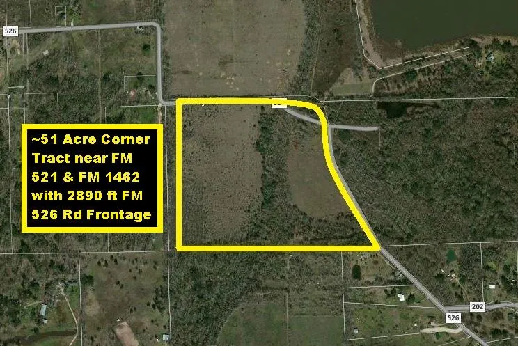 Highly Desired ~51 Acre Corner Ranch near FM 521 & FM 1462 w/~2890 ft FM 526 Rd Frontage. FM 521 is Busy 4-Lane Road Traveled by Commuters to TX Medical Center. Located Outside City Limits! Low Taxes! No HOA! Hunting Allowed! Livestock Ok! Great location! Minutes to TX-288, TX-6 & Proposed Grand Pkwy/TX-99. See Map of Proposed Grand Parkway under Pictures! Close to Manvel/Pearland & 25 miles to Houston Downtown, TX Medical Center, Hobby Airport, Sugarland & 3 Universities via Sam Houston Tollway/Beltway 8 & TX-288. Perfect for Residential Development, Commercial Property or Ranch/Farmland. 188 Acres Across FM 526 Also For Sale! Do Not Enter Property Without Listing Agent! Appointment is Required to Walk Property! Do Not Disturb Occupants!