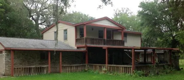 Currently under contract **SALE PENDING** Convenient to Sweeny and Brazoria, this 10 acres is set up for Horses with 4 stalls, 2 ponds, fenced and cross fenced. Wooded, quiet Country living. Hot tub with screened in area, above ground pool and plenty of open porch including a great balcony on the Master Suite overlooking the front pond and long shaded driveway. Perfect property for a large family and family gatherings. Pens for 4H of FFA projects. Make this your own country paradise. Ready for RV with septic and water hookups.