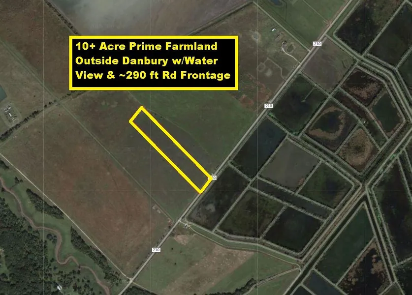 Ag Exempt! 10+ Acre Prime Farmland w/Water View & ~290 ft Road Frontage! Located outside Danbury close to Bayou Oak Estates & TX-35. Can Be Commercial, Multifamily, Residential! Hunting Allowed! Minutes to TX-288/Angleton, Alvin, Brazoria National Wildlife Refuge & INEOS Chemical Plant. 30 miles to Freeport Chemical Plants, Lake Jackson, Surfside Beach & Brazos Bend State Park. Very Low Taxes! No HOA! Needs Well & Septic! Great for Investor! Call Capital Farm Credit for Loan! Appointment required to Walk Property due to Cattle!